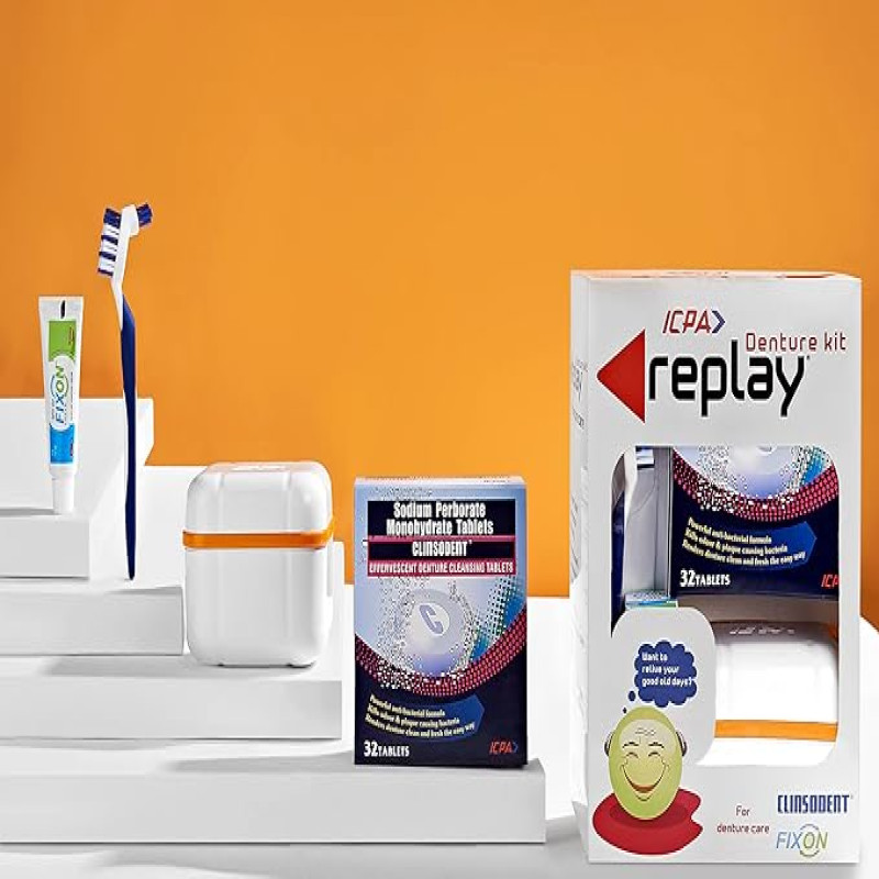 ICPA Replay Denture Cleaning Kit with Storage Container and Adhesive