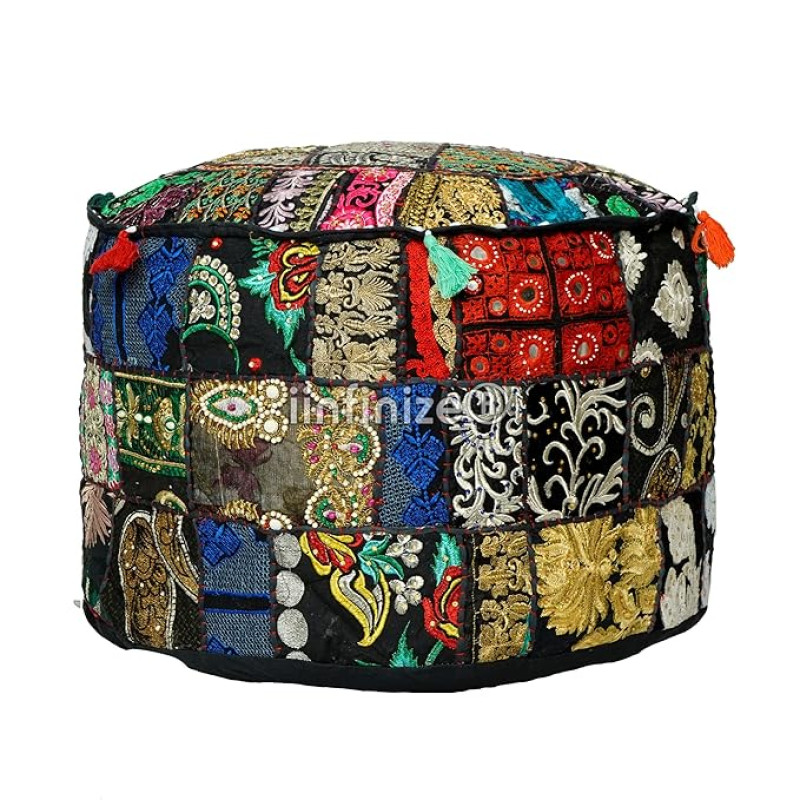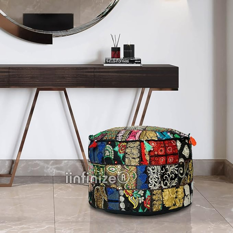 iinfinize Cotton Ottoman Patchwork Pouf Cover Tassels Floor Bean Bag Living Room Decor Ottoman Indoor Outdoor Seating Pouffe Garden Ottoman Chair Corner Footrest (22x22x13 Inch)
