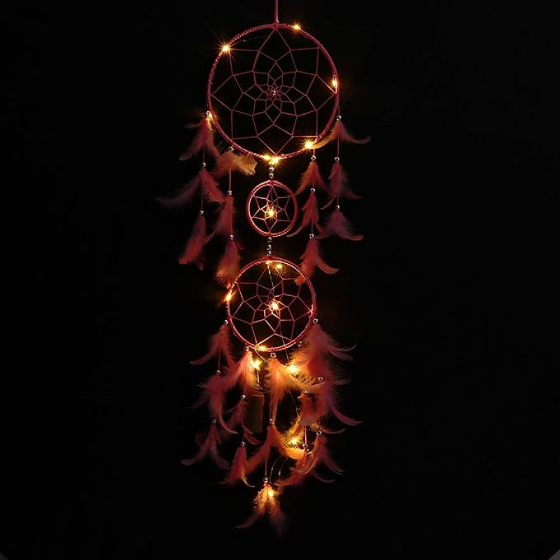 ILU® Dream Catcher with Lights, Wall Hangings, Crafts, Home Décor, Handmade for Bedroom, Balcony, Garden, Party, Café, Decoration, Wedding, Decorative, Pink Feathers (17 cm Diameter)
