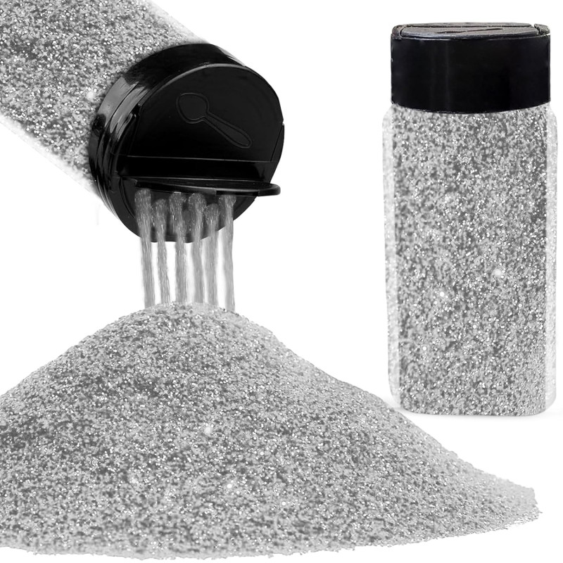 INDIKONB Sparkle Fine Glitter Dust Powder with Sprinkler Bottle | Multicolour Chamki Glitter for Art & Craft, Resin Art, Nail Art, Scrapbooking, Candle Making (50g) (Silver)