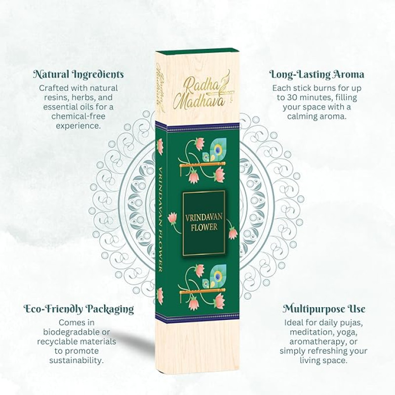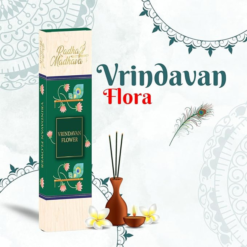 ISKCON Natural Agarbatti Incense Sticks 8 Inch | Long-Lasting Aroma | Burns Up to 30 Minutes per Stick | Premium Fragrance for Puja Meditation & Yoga (Pack of 2, Vridavan Flora)