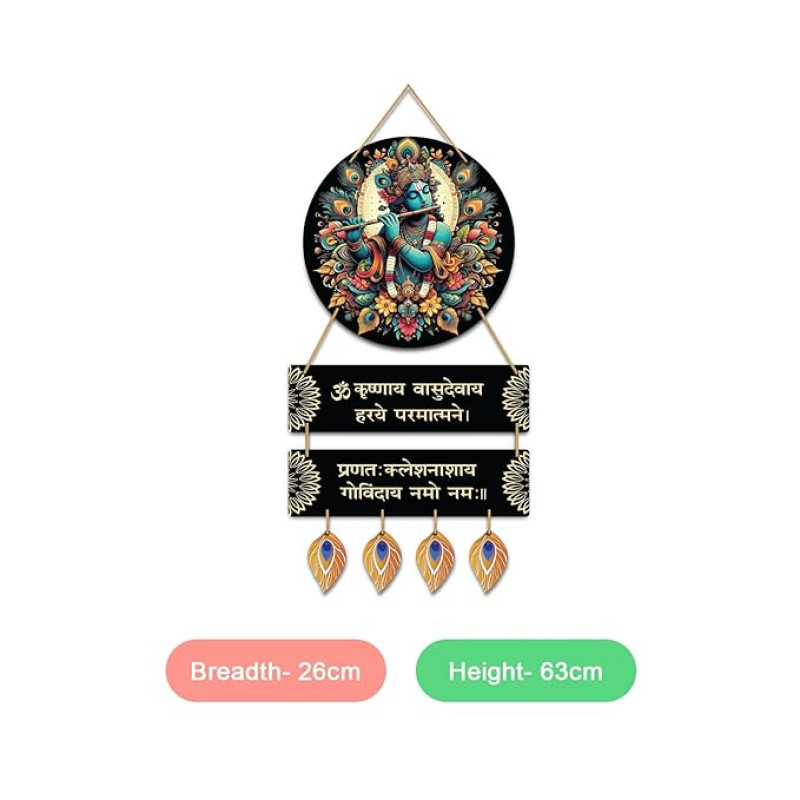 Kaameri Bazaar Wood Hare Krishna Vasudevaya Haraye Paramatmane Krishna Mantra Wall Hanging for Living Room|Home Decoration Item|Wall Art,63 Cm