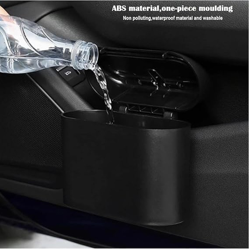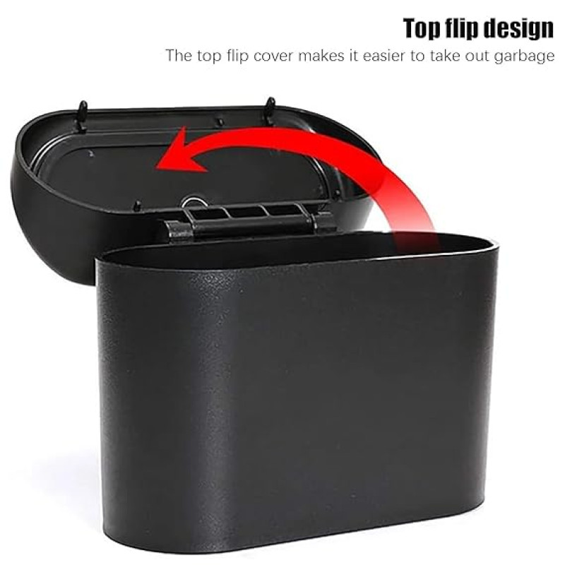 KRYLAR-Car Trash Bin with Lid Portable Hanging Mini Waste Basket Reusable & Waterproof Plastic Desktop Trash Bin for Car/Home/Office/Kitchen Garbage Collector Pressing Type Waste Container(black)