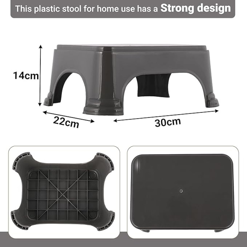 Kuber Industries Durable Bathroom Stool for Bathing | Comfortable Indoor Machiya for Sitting | Senior Citizens Bath Stool & Adults Patla Chair for Home | Plain P6 - Grey