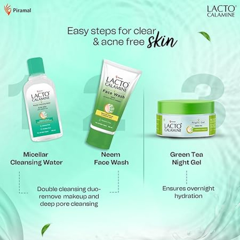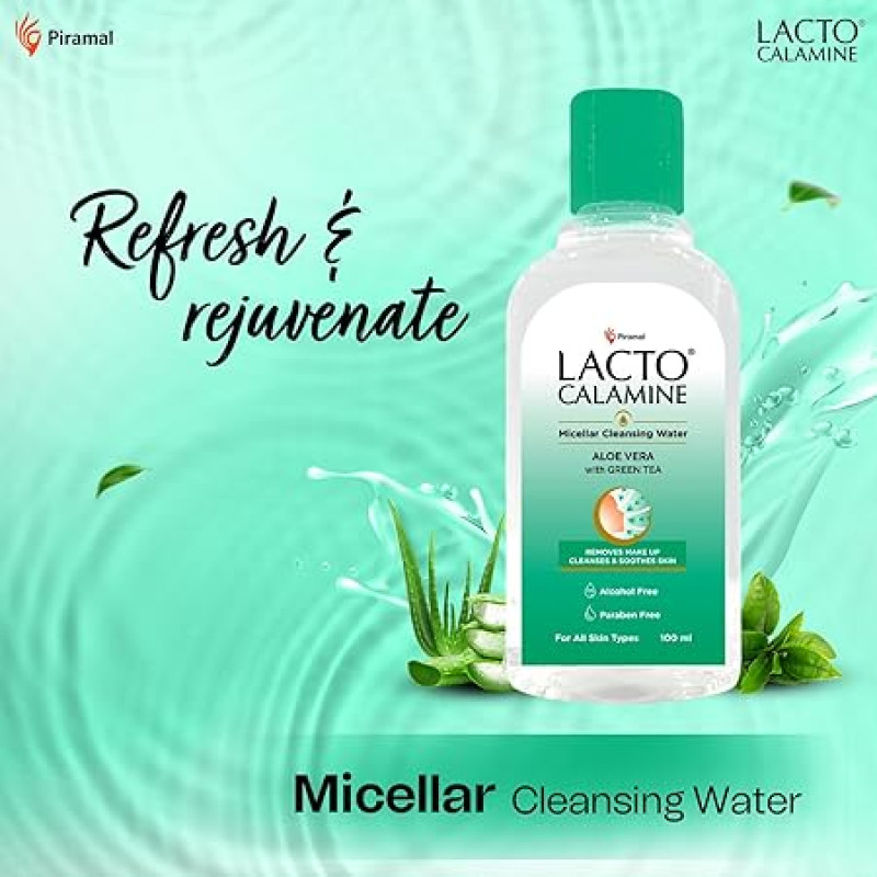Lacto Calamine Micellar Water Make Up Remover Liquid | 100ml | With Aloe Vera, Green Tea & Niacinamide | Cleansing Water For Face That Removes Make-Up, Excess Oil & Impurities | Alcohol Free