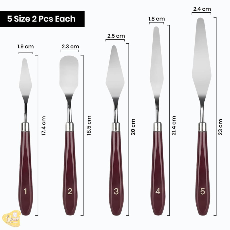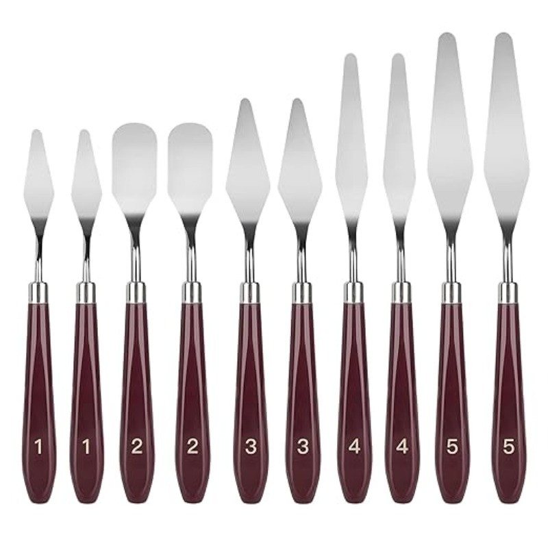 Lakeer Palette Knife Set - 10 Pcs Stainless Steel with Wooden Handle, Ideal for Acrylic, Oil Painting, and Mixed Media Art