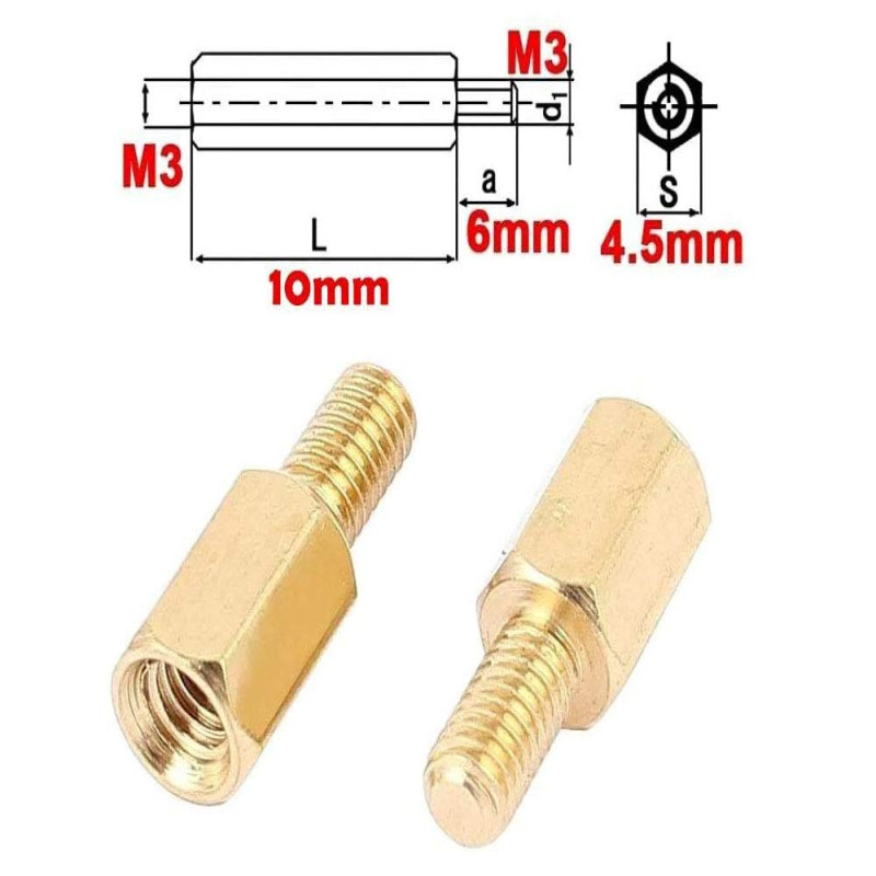 Liyafy M3 10+6mm Female Male Thread Brass Hex Standoff Spacer Screws PCB Pillar 60Pcs