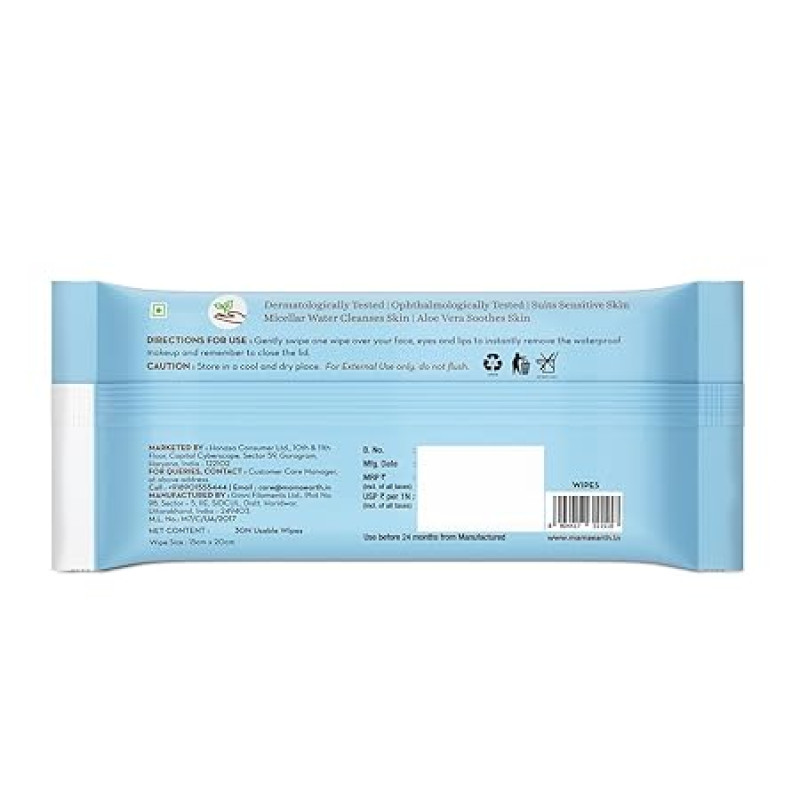 Mamaearth Micellar Gentle Makeup Remover Wipes - 30Nos|Gentle on Skin |Soothes Skin |Removes Waterproof Makeup For Eyes and Lips |No Alcohol |No Fragrance |Dermatologically & Ophthalmologically Tested