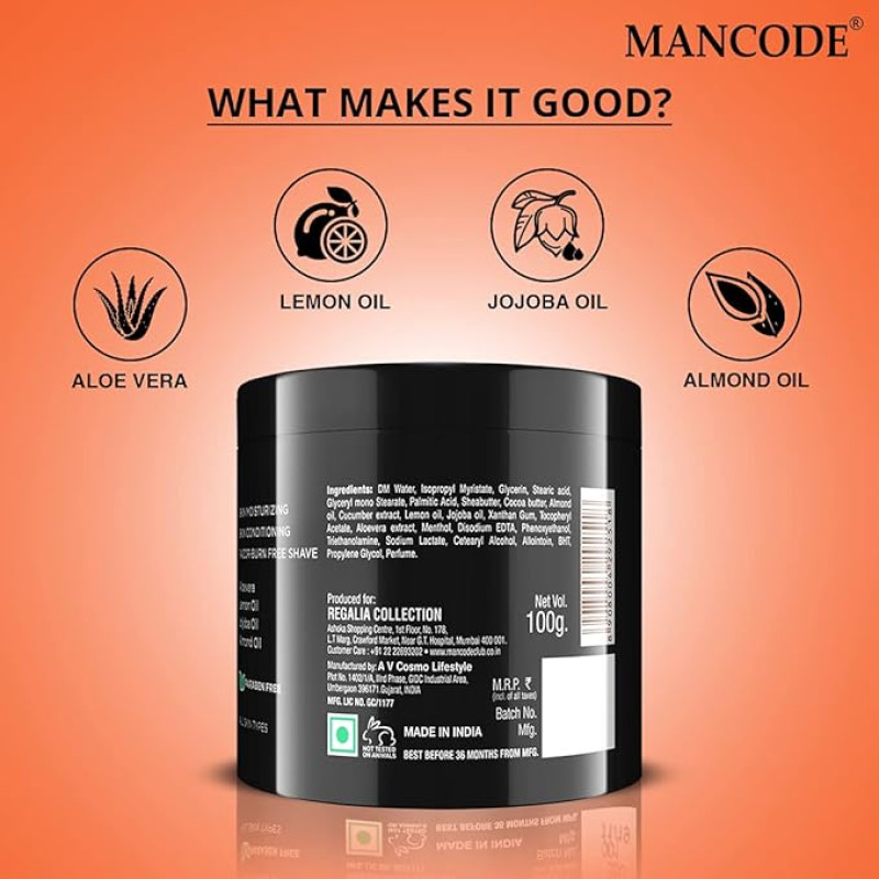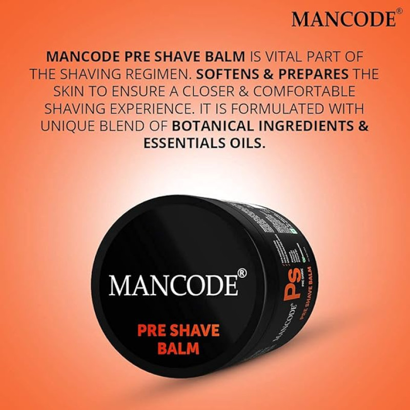 Mancode Pre-Shave Balm for Men | 100gm | Balm Softens your Beard | Provides Razor Glide for a Smooth Zesty Shave | Apply to Prevent Shaving Irritation and Razor Burns | Cut & Irritation Free Shave.