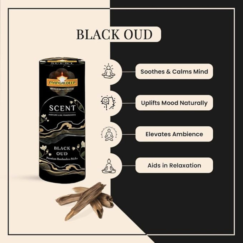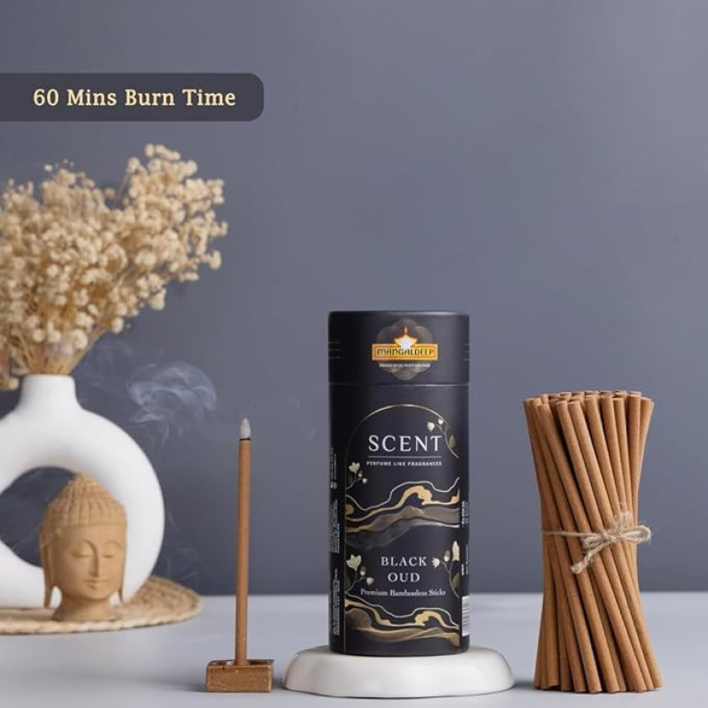 Mangaldeep Scent Premium Bambooless Dhoop Sticks - Black Oud - Ceramic Stand Inside -with Essential Oils - (30 Sticks)