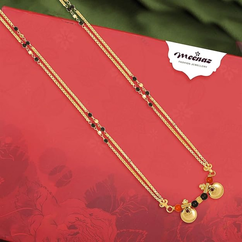 Mangalsutra For Women Girls Temple South Indian Traditional 1 Gram Gold Stylish Maharashtrian Long Double Chain Double Mangal sutra Pendant Tanmaniya Black Nallapusalu Chains -667