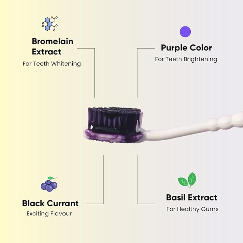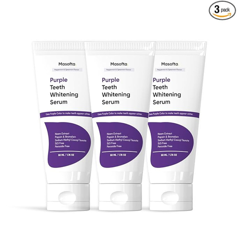 Masofta Purple Teeth Whitening Serum With Bromelain & Papain For Yellow & Dark Teeth Stains, Purple Toothpaste, For Both Men & Women, (Pack of 50ML X 3)