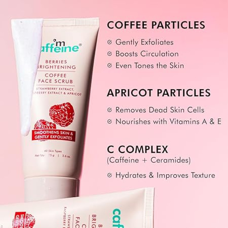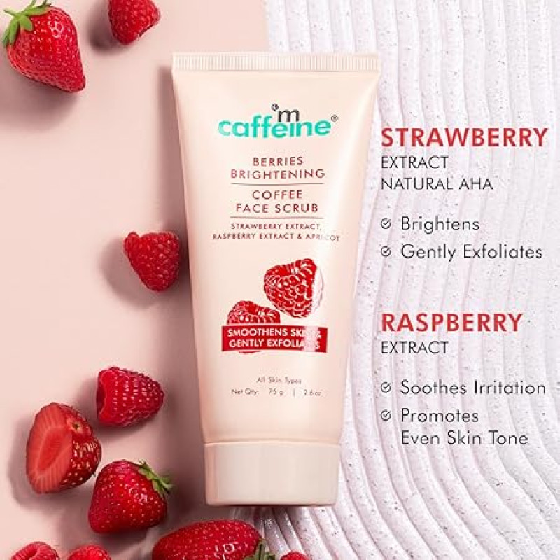 mcaffeine Berries Brightening Coffee Face Scrub For Glowing Skin | Gently Exfoliates, Smoothes & Improves Skin Tone | Removes Tan&Dead Skin | Tan Removal Face Scrub | Non-Drying For Women & Men-75Gm