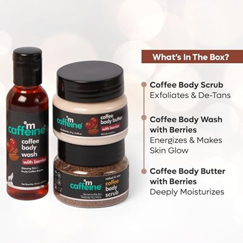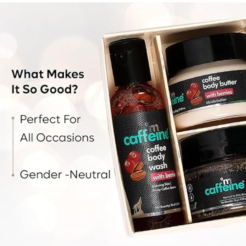mCaffeine Body Care Gift Set for Women & Men with Berries Body Wash, Body Scrub & Body Butter |Gift Set for Mother and Wife | Women's day Gift Box with 3 Travel Sized Premium Caffeine Rich products | Raksha Bandhan Gift kit | Perfect Hamper for Her |