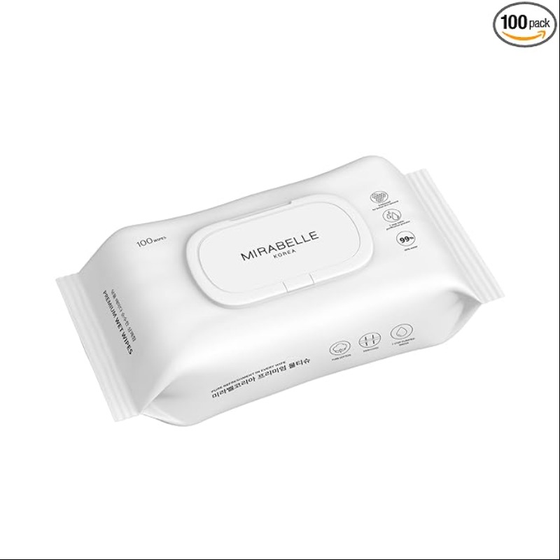 Mirabelle Korea Wet Wipes for Face with Lid - 100 wipes | 99% Pure Water, fragrance free | Makeup Remover Wipes | Hydrating & Refreshing | Korean Skincare | All Skin Types | Baby & Adult Safe