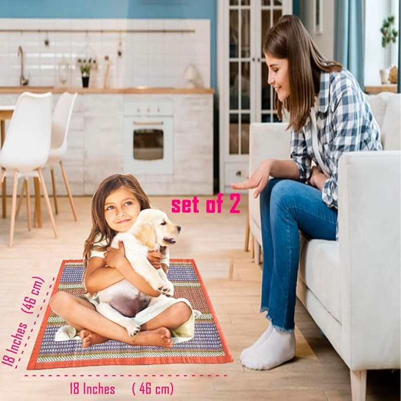 Montelal Store Handmade Korai Pai Kusha Grass Pooja Aasan Sitting Floor Mats Orange -Set of 2 Pcs