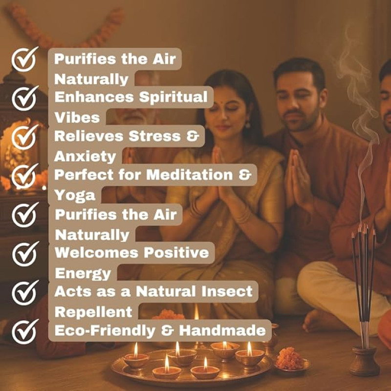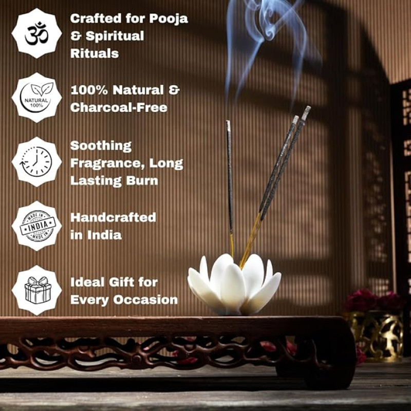 - 🔥 Long-Lasting Fragrance that Calms the Mind & Purifies the Air: Enjoy a pure and relaxing experience with every stick. These incense sticks emit a mild yet captivating fragrance that lingers for up to 60 minutes per stick, helping you unwind, focus, and spiritually reconnect. Best suited for peaceful mornings, serene evenings, and divine rituals.
