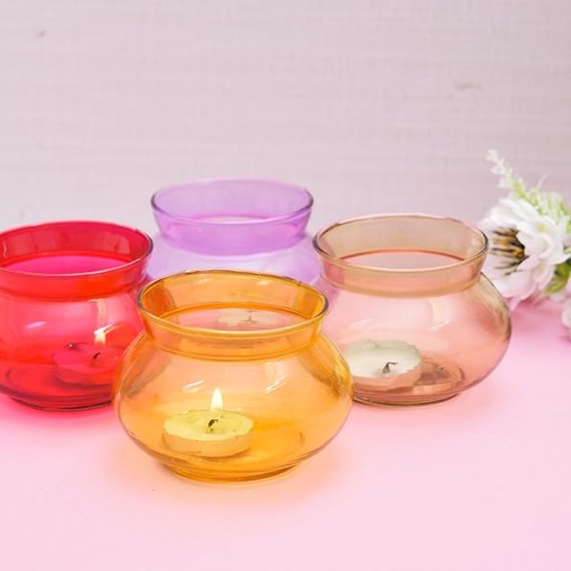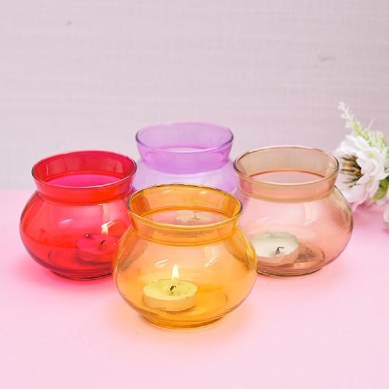 OGGN Glass Handi Candle Holder Set/T-Light Holder for Diwali Decoration Items, Multi (Pack of 4)