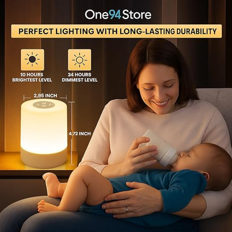 One94Store Touch Control LED Table Lamp – USB Rechargeable, Touch Control Night Light with 3-Color Dimmable Brightness for Bedroom, Living Room & Study (White, Pack of 1)