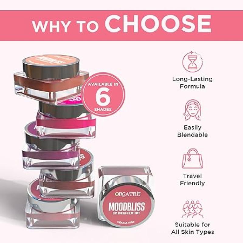 Orgatre Festive Gift for her Beauty Makeup Kit set for Gifting – Eye Kajal, Lip & Cheek Tint, Liquid & Bullet Lipstick, MoodBliss Eyeliner, BB Cream – 6-in-1 Festive Makeup Combo for Eyes, Lips & Face