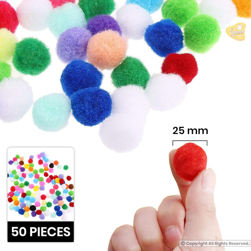 Paraspapermart 50 Pieces Mixed Color Felt Balls Pompom Ball Pom Pom for DIY Sewing Crafts Jewelry Making - Multicolor, 25mm, Felt