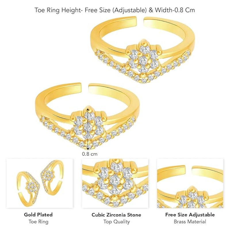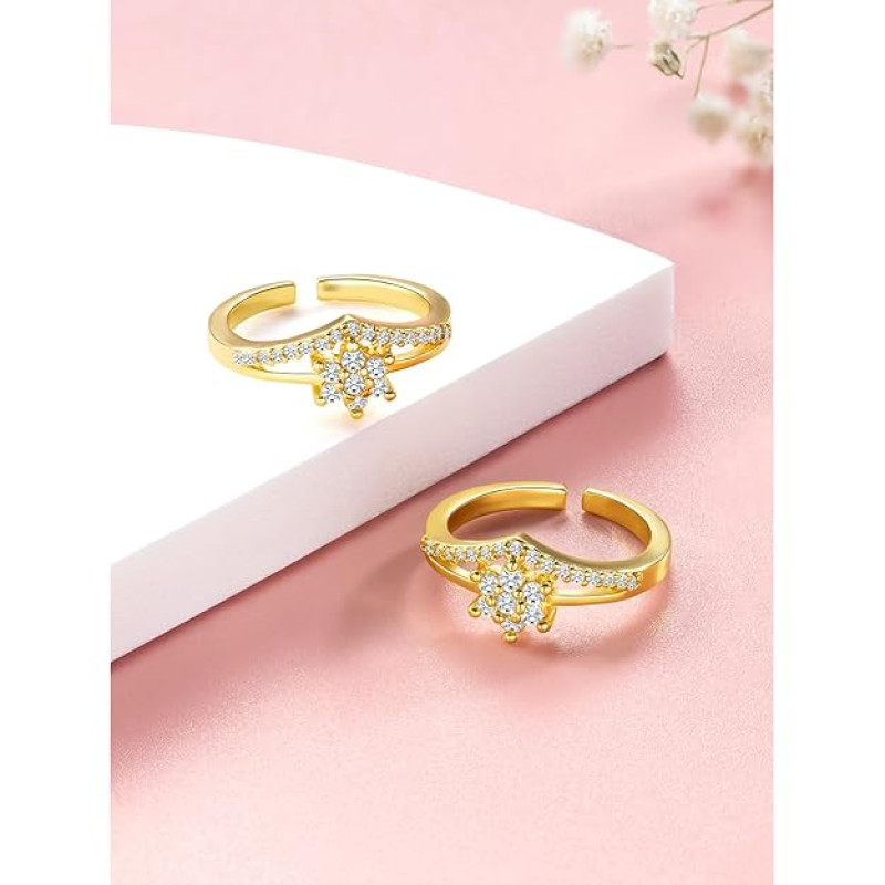 Peora Cubic Zirconia Studded Adjustable Toe Ring Stylish Bichiya Fancy Daily Regular Jewellery for Women