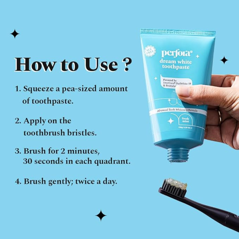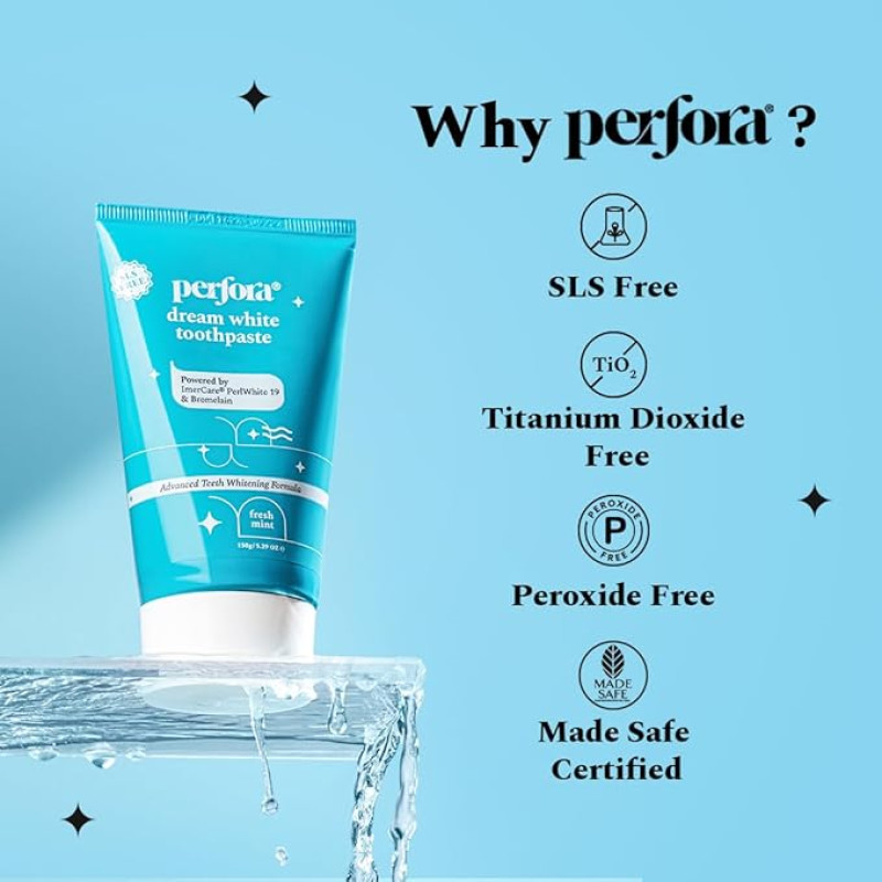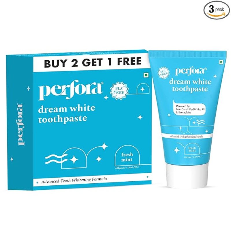 Perfora Teeth Whitening Toothpaste For Stain Removal - 450 g (150 x 3) | SLS & Fluroide Free Toothpaste | N-Ha For Teeth Remineralisation| Toothpaste For Kids & Adults | Tripe Mint