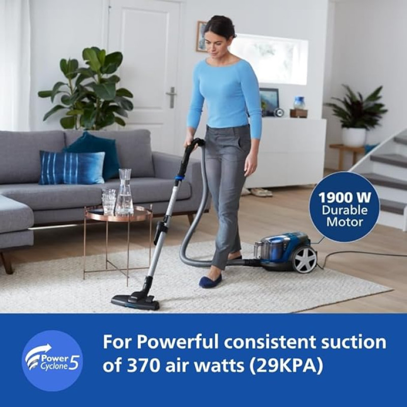 Philips PowerPro FC9352/01-Compact Bagless Vacuum Cleaner for Home |1900Watts for Powerful Suction |Compact and Lightweight| PowerCyclone 5 Technology and MultiClean Nozzle |2 Years Warranty