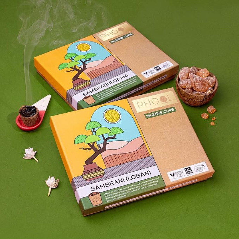 PHOOL LUXURY INCENSE Sambrani Dhoop Cups for Pooja and Havan,16 pcs + 1 Free Stand Certified Natural,Dhuni for Pooja 100% Sambrani Fragrance (loban) Original Guggal Dhoop