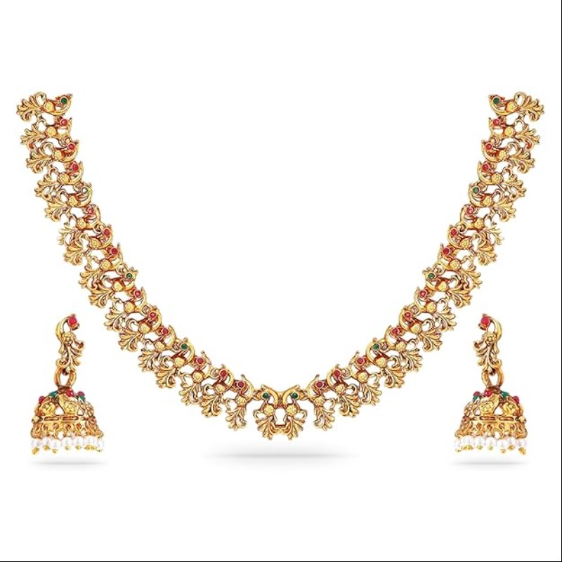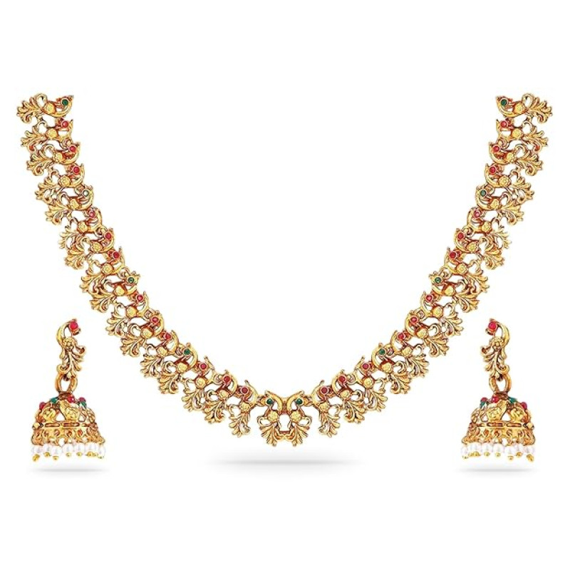 Plated Ruby/Red/Pink & Emerald/Green stone studded Handcrafted Jewellery Set - Ideal for Weddings & Special Occasions