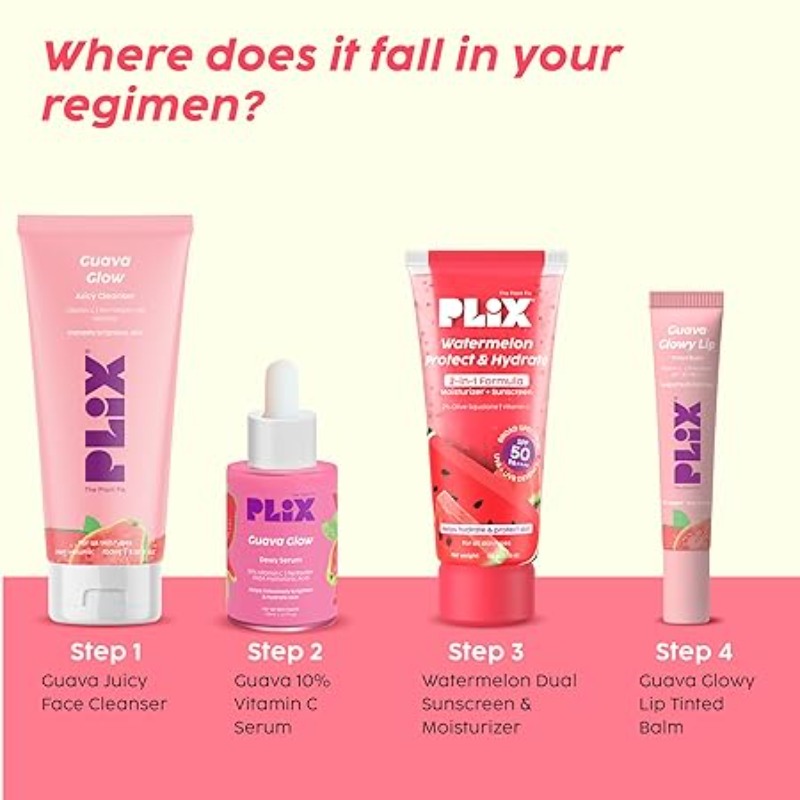 PLIX - THE PLANT FIX Glow, Moisturize & Protect Duo | Guava cleanser & Watermelon dual sunscreen | With SPF PA 50 ++++ & Vitamin C | Lightweight Hydration