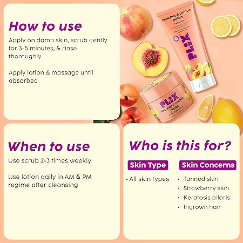 PLIX - THE PLANT FIX Peaches & Lemon Detan Bump Eraser Scrub (200g) | Removes Tan & Restores Skin’s Moisture, Reduces Dark Spots, Uneven Skin Tone, & Reveals Softer Smoother Skin