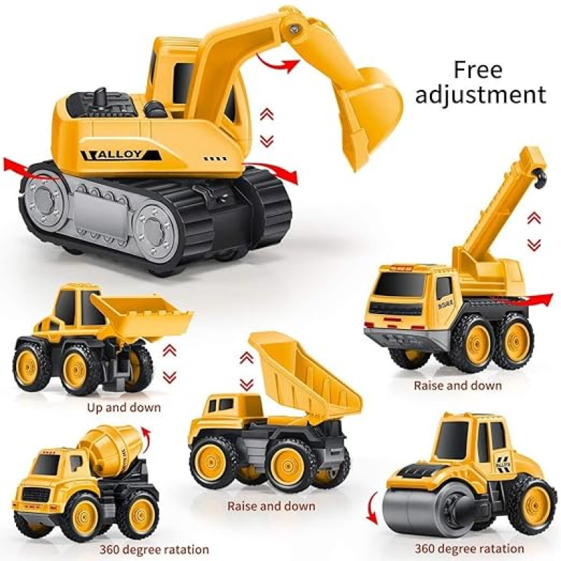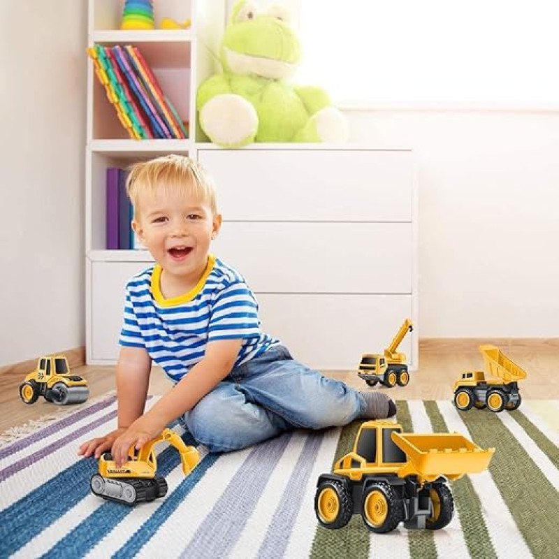 PLUSPOINT 6Pc Diecast metal Pull back Construction Vehicles for Kids Pretend Play Toy Roller Crane Excavator Dumper Mixer Bulldozer Trucks Play Set Building Vehicles Set for Kids (6 in 1 Construction)