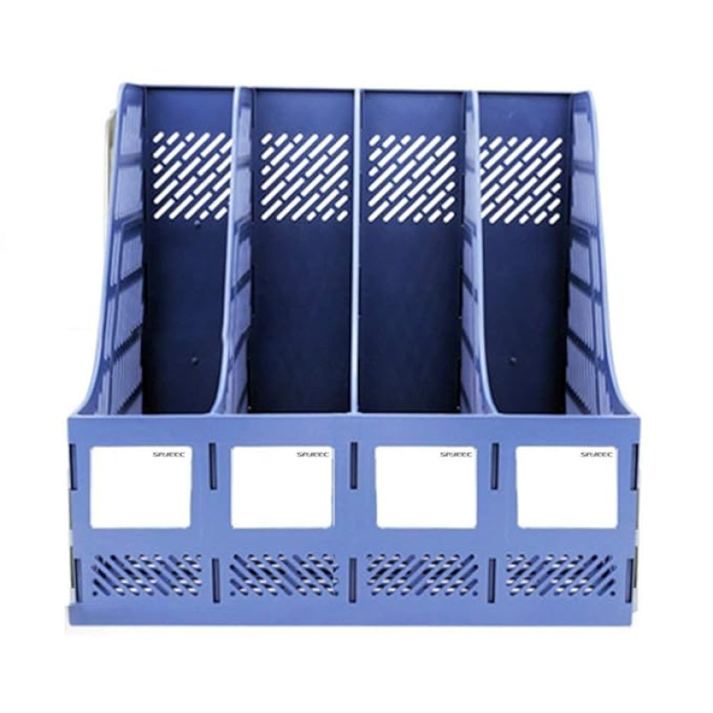 Pranij Desktop Bookshelf Magazine Organizer 4 Compartment Plastic Frames File Holder Dividers Document Cabinet Rack Storage Box For Office Home School (Blue) - Tabletop, Step Shelf