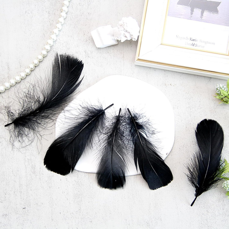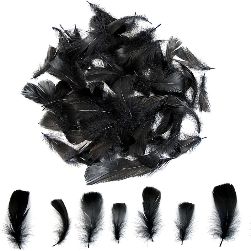 Prescent 100 pc Black Soft Turkey Fluffy Feathers for Art Crafts, Decorations, Making Apparels, & More (5-6 inches, Black)