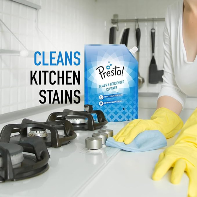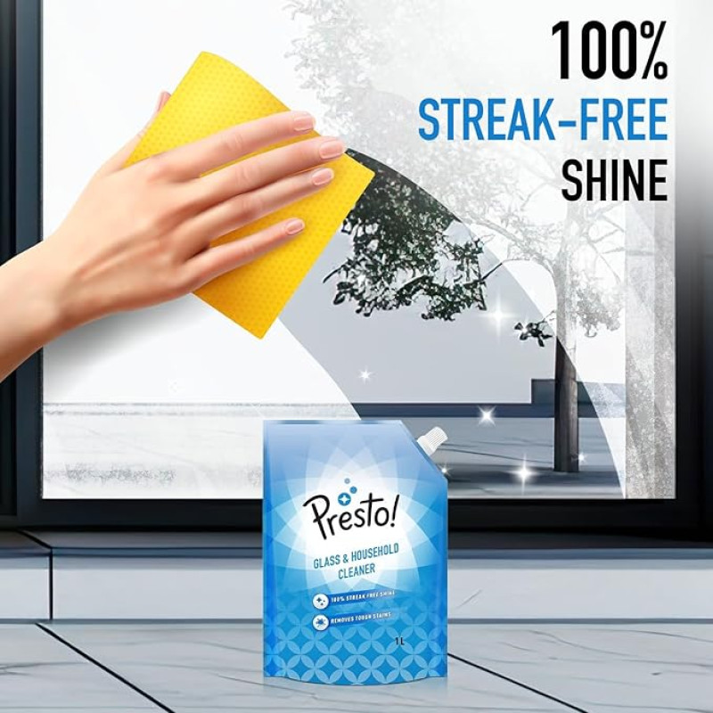 Presto! Glass & Household Cleaner | 2 Litre Refill Pouch | 1 L X 2 Packs | Suitable For Glass, Mirrors, Appliances Like Microwaves, Ceramic Tiles, Glazed Tiles, Granite