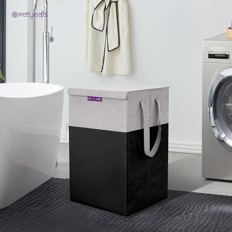 PrettyKrafts 75 LTR Laundry Basket for Clothes with Lid | Laundry Bag Foldable | Laundry Bag for Clothes | Clothes Basket | Basket for Clothes Storage | Toy Storage Basket | 36x36x53cm | Black