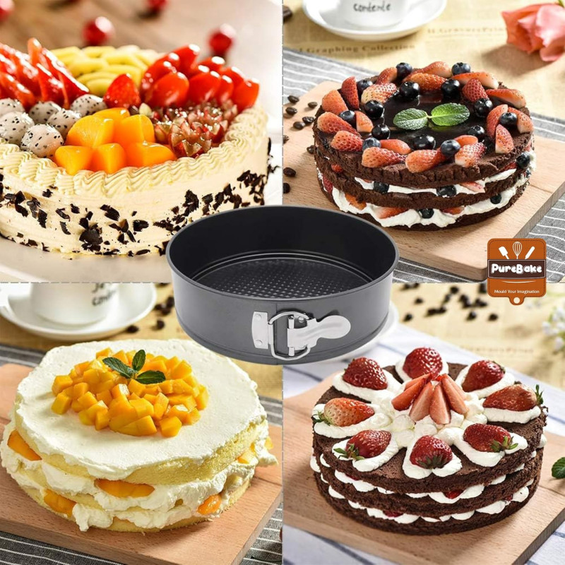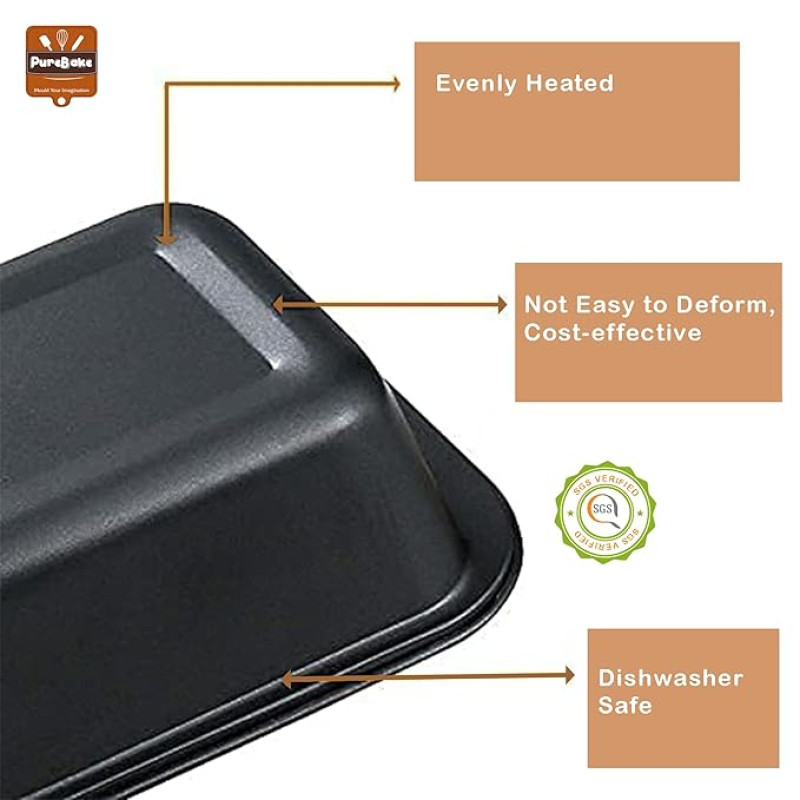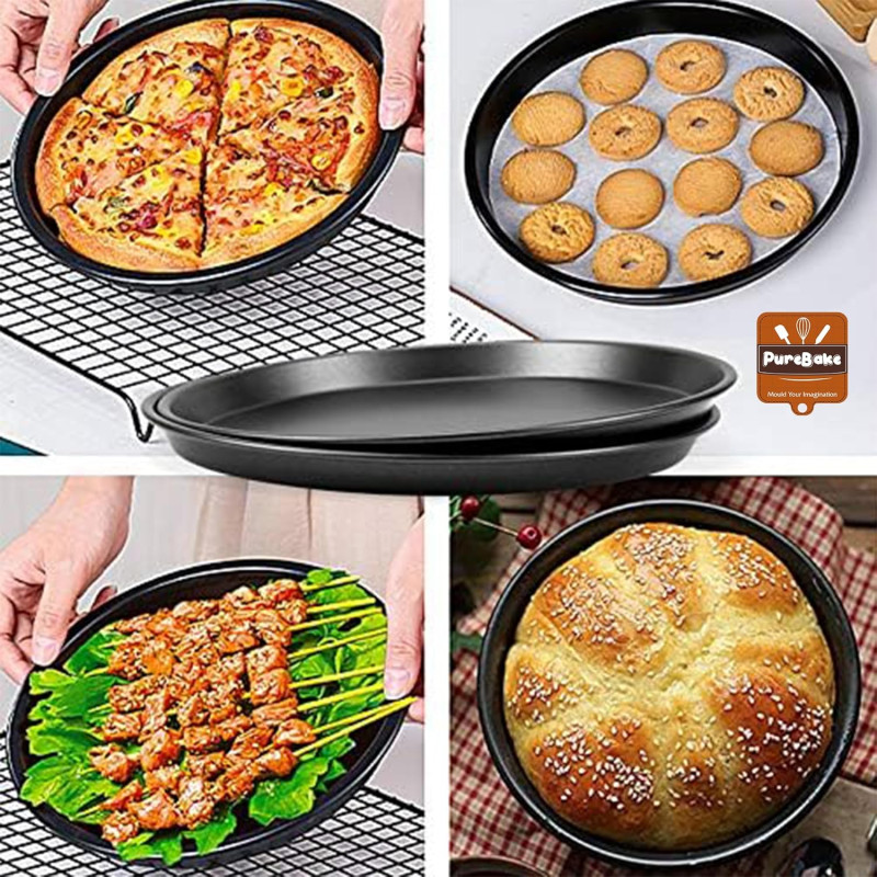 PureBake Premium Sgs Certified Cake Baking Combo 4 Baking Set Includes Round Cake Tin, Bread Loaf, Pizza Pan & Muffin Tray Cake Moulds Set - Suitable For Microvawe OTG Oven And Dishwasher Safe,Black