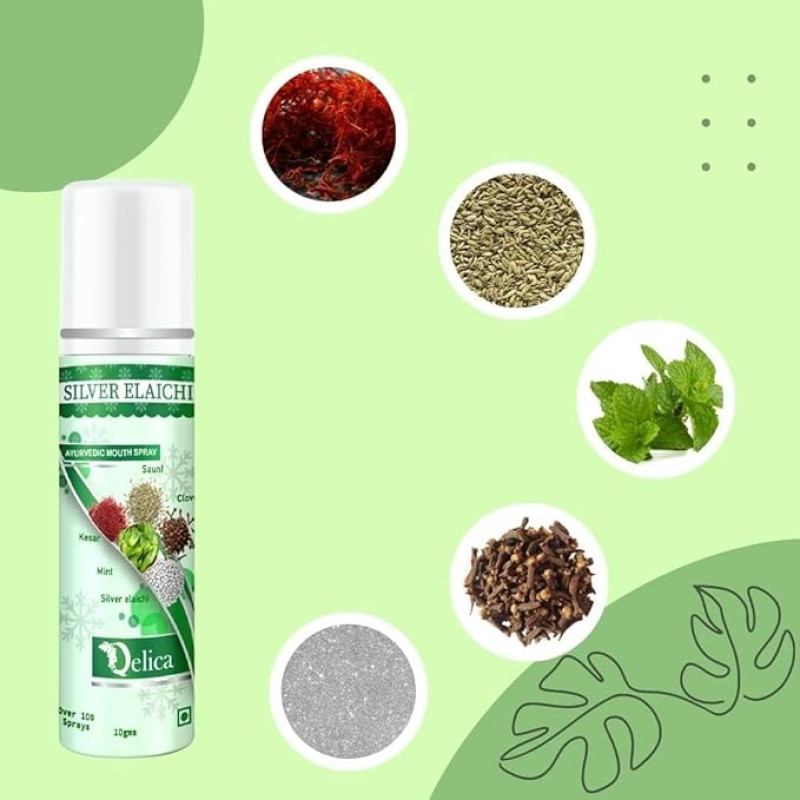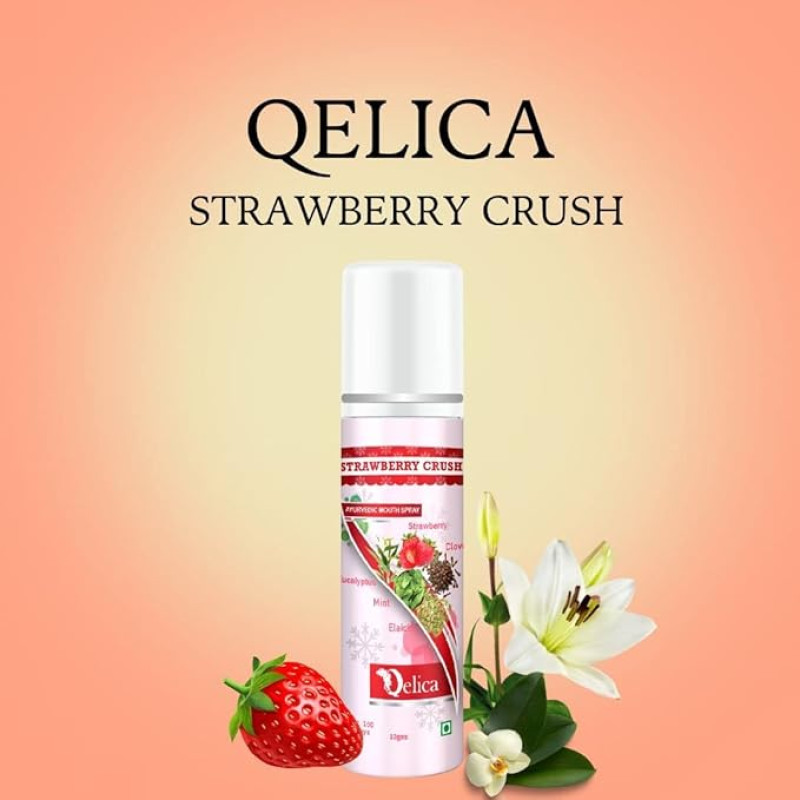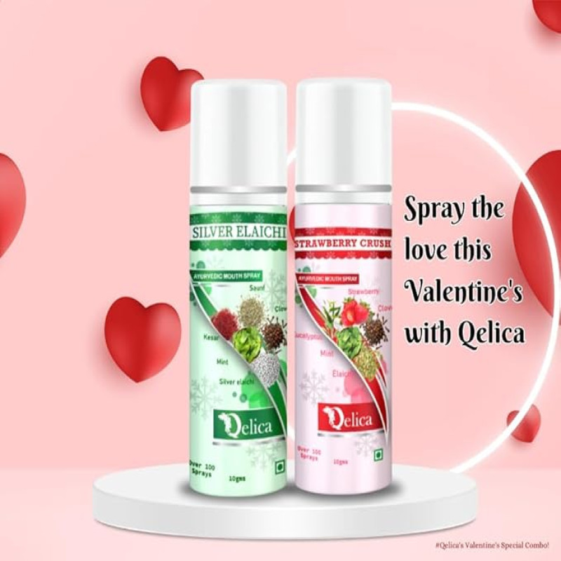 Qelica Strawberry Crush & Silver Elachi Ayurvedic Mouth Spray 20 gram Breath Freshener for Oral Hygiene Fresh Breath 100+ Spray for Men and Women Long Lasting, Pocket Friendly