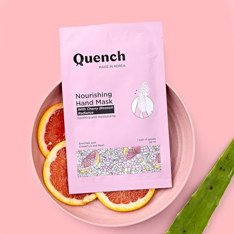 QUENCH Nourishing Hand Mask | Hydrates & Brightens Hands | Nourishes Nails & Cuticles | Leaves Hands Smooth & Supple | Manicure Kit | Made In Korea (1 Pair Of Gloves, 20Ml)