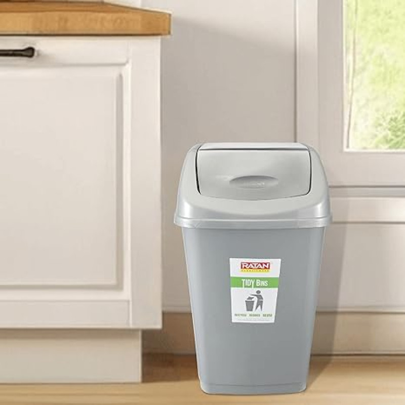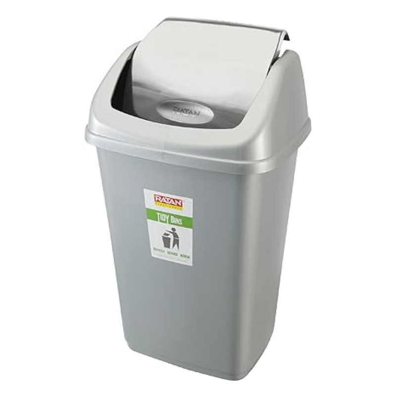 RATAN PLASTICWARE Tidy Bin with Swing Lid 25 Litres Plastic Dustbin, Trash Bin, Garbage Waste Bin For Home, Bathroom, Kitchen, Office, Bedroom Grey Color