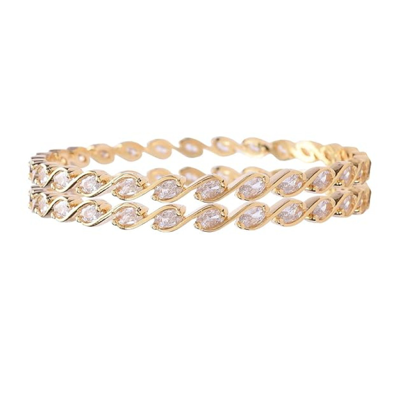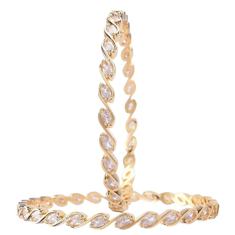 RATNAVALI JEWELS Gold Plated American Diamond White Designer Latest Bangles for Women/Girls RV3392