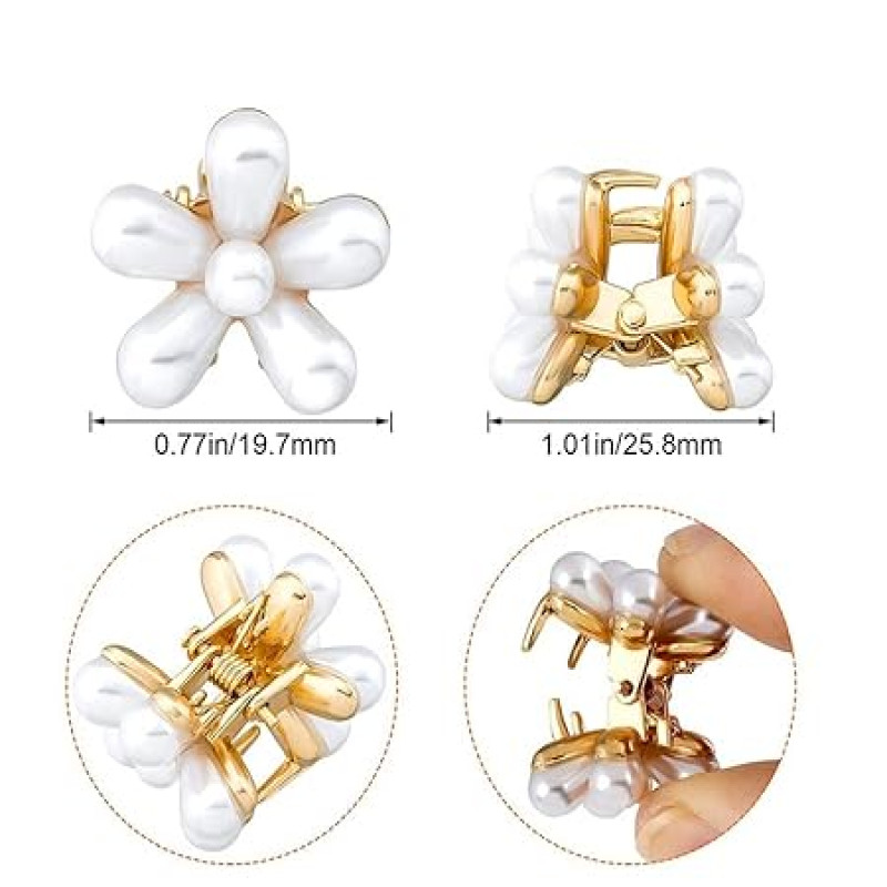 RedChimes Korean Style Small Pearl Mini Hair Claw Clips with Flower Design, Sweet Artificial Decorative Hair Accessories for Women's Girls Pack of 10 Pcs