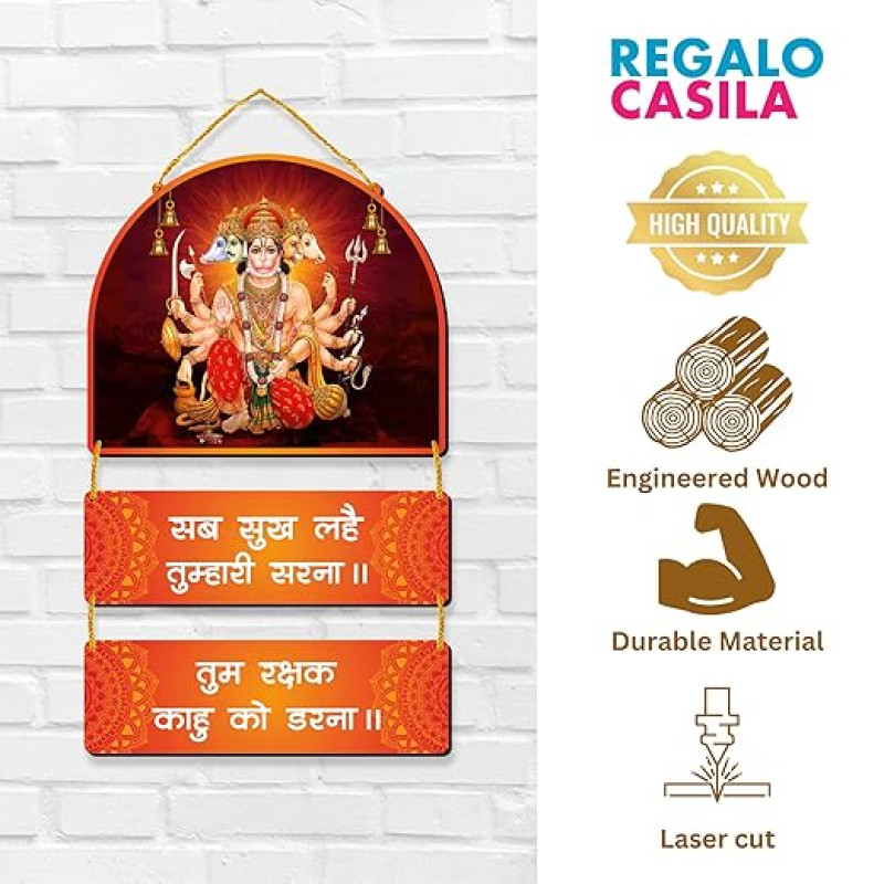Regalocasila Positive Quotes Wall Hanging Hanuman Ji Mantra Printed Wooden 2 Titles Wall Art Decor for Home Decoration With Adjustable Rope Decorative Item for Pooja & Temple Room-Design- 4
