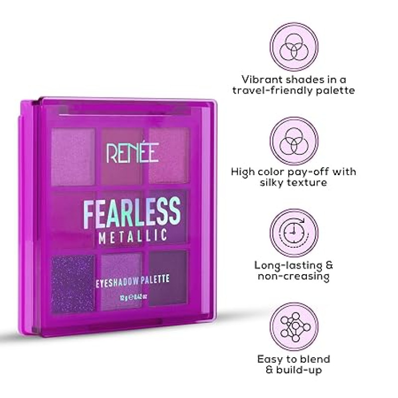RENEE Fearless Eyeshadow Palettes – Metallic 12gm, Vibrant Shades, Long Lasting, Non Creasing, Easy-to-blend & Build Up For Eye-catching Transition From An Office To Glamorous Smoky Eye