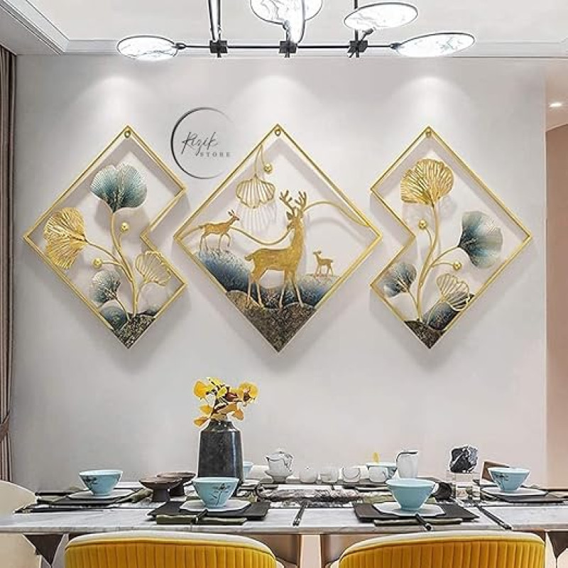 RIZIK STORE® Metal Abstract Figures handcrafted Wall Sculpture wall art multicolor for Home Decoration, Living room, drwaing room & Bedroom (PACK OF 3) WDD-NEW (DEER GOLD)