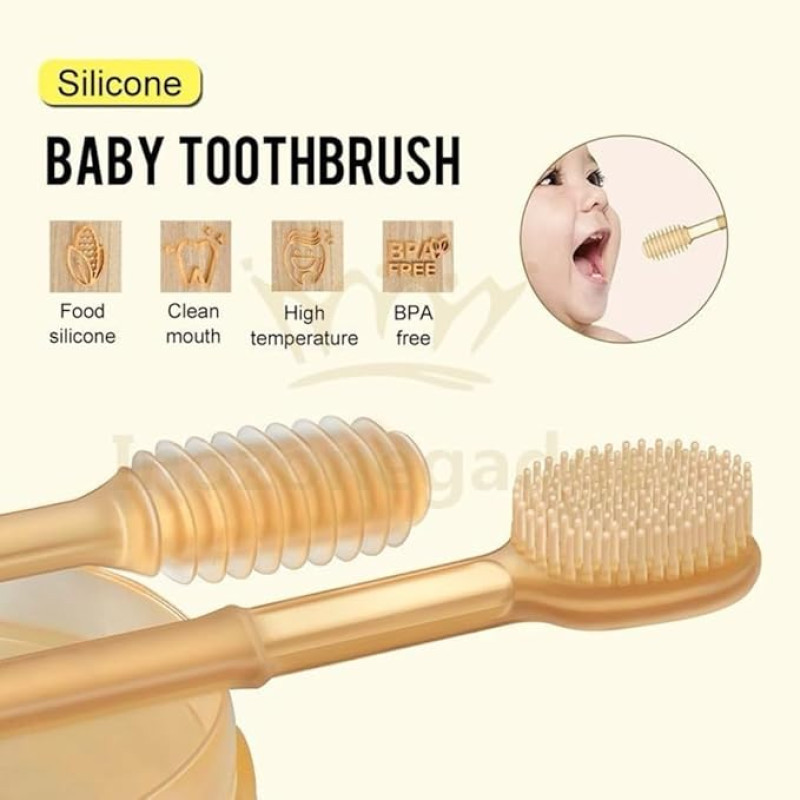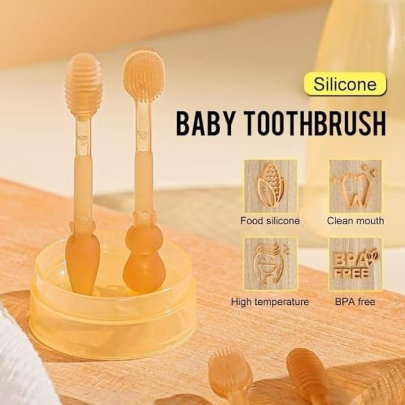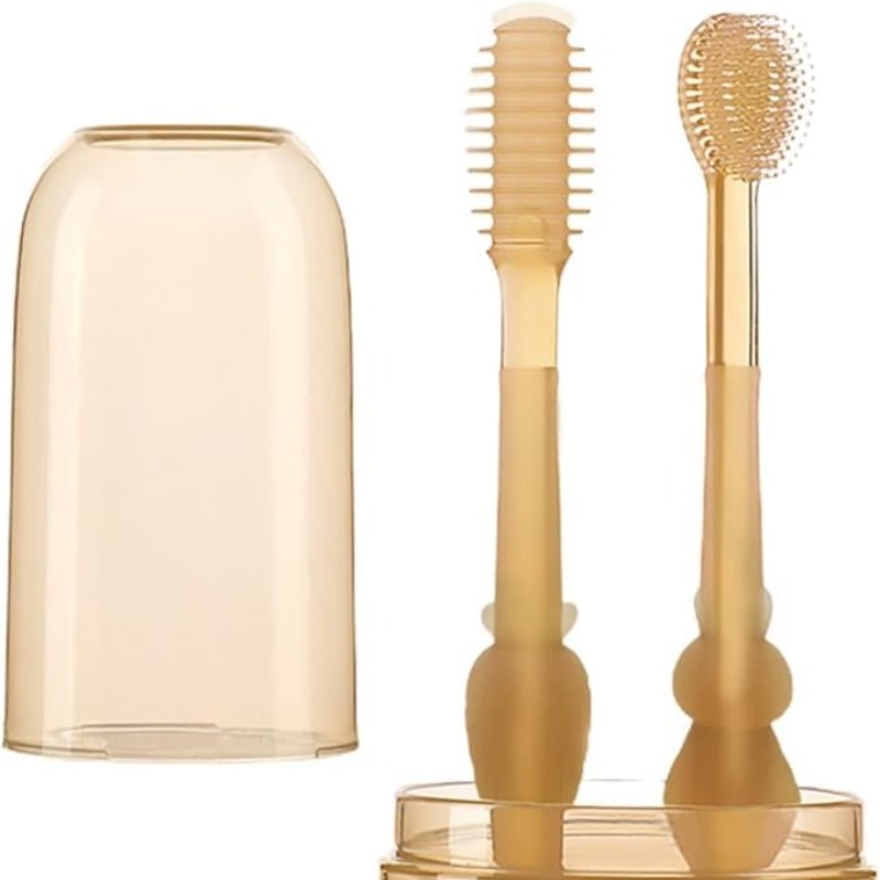 RuRi Set Baby Toothbrush Infant Degree Cleaning Dental Care Silicone Baby Tongue Brush Toothbrush Kit Bath Toys for Infants Toddler