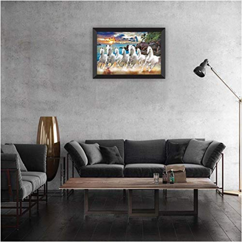 SAF paintings 7 Running Horses Vastu UV Teatured Digital Reprint Framed Painting (11 inch X 14 inch) SANFK51