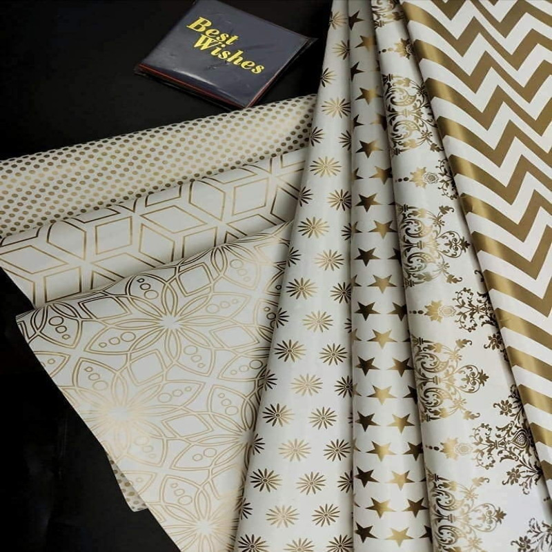 SATYAM KRAFT 10 Pcs White & Golden Premium Design Gift Wrapping Paper for gift Packing Sheets Decorative Romantic Gift Wrap for Birthday Box, Anniversary, Wedding, Return Gifts, book Cover, Packaging material, Craft, kids