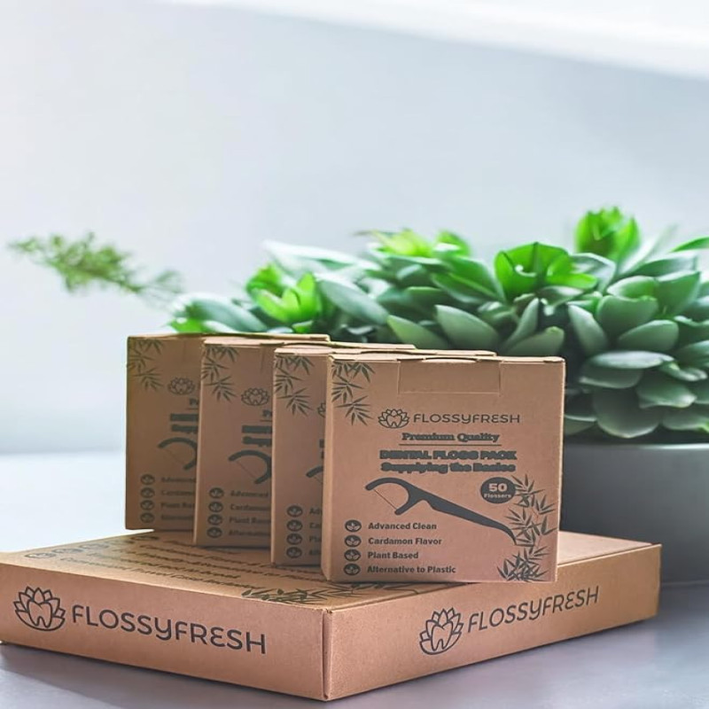 Sea7 Holdings FlossyFresh Biodegradable Dental Floss Picks | Plant-Based Oral Care | Eco-Friendly Tooth Flossers for Adults & Kids | Mint Flavour | Dentist Recommended